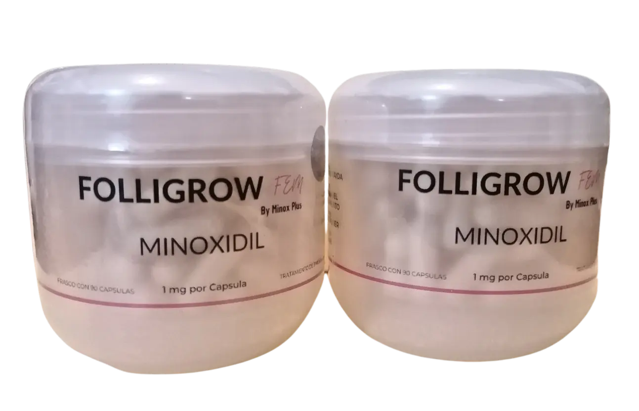 Folligrow Fem es un cosmético capilar que combate la caída del cabello y estimula el crecimiento desde los folículos pilosos. Esta presentación consta de 2 envases de 90 cápsulas cada uno, cada cápsula cuenta con 1 mg de Minoxidil que fortalece el cuero cabelludo desde la raíz hasta la punta. El uso correcto hace que el tratamiento dure 6 meses.